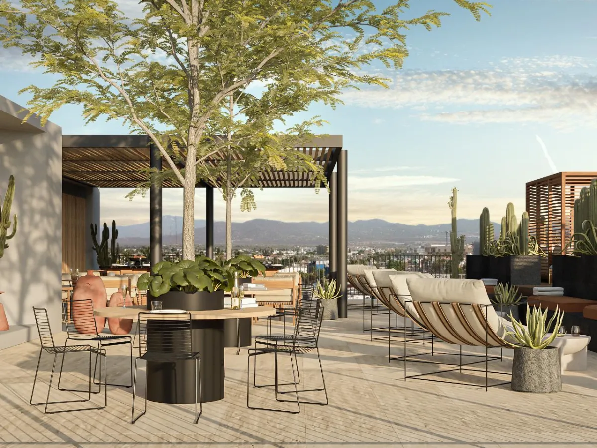 AISHA ofrece amenidades exclusivas como: rooftop con alberca y vistas inigualables, área de coworking, gimnasio, espacio social y estacionamiento privado