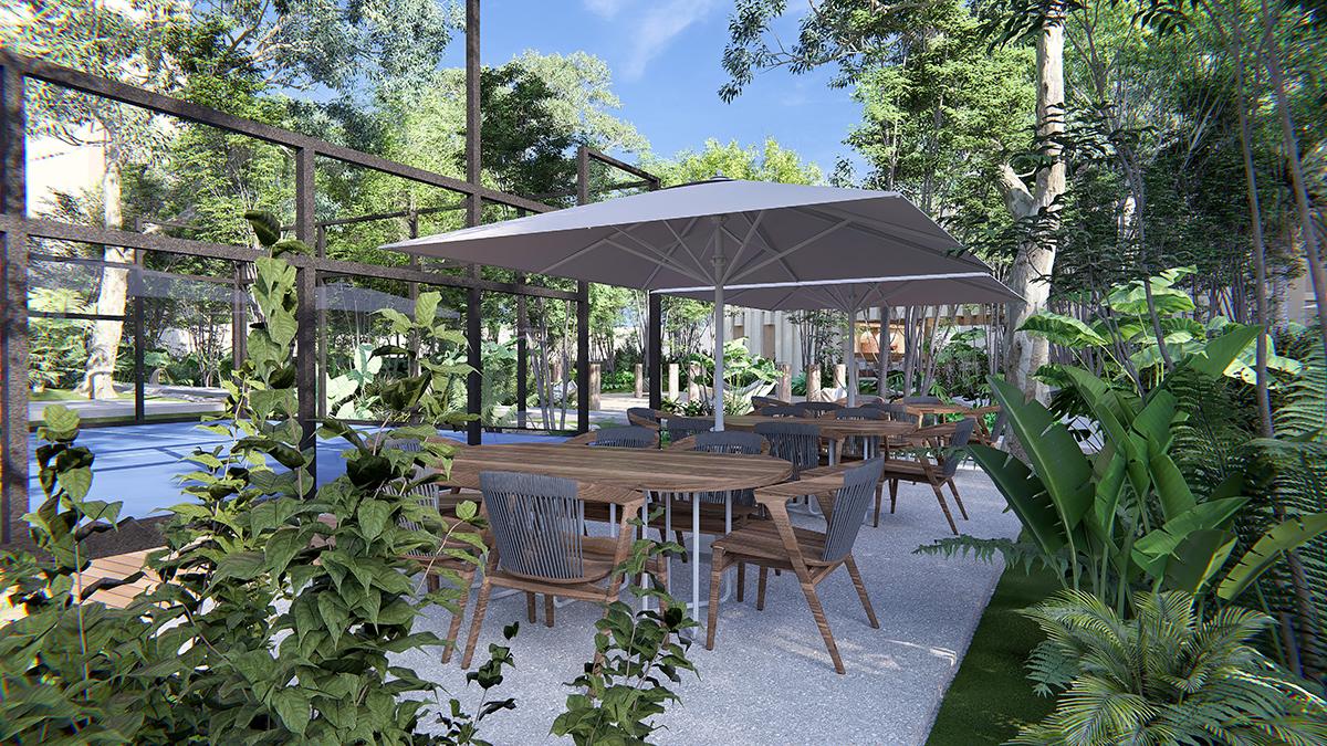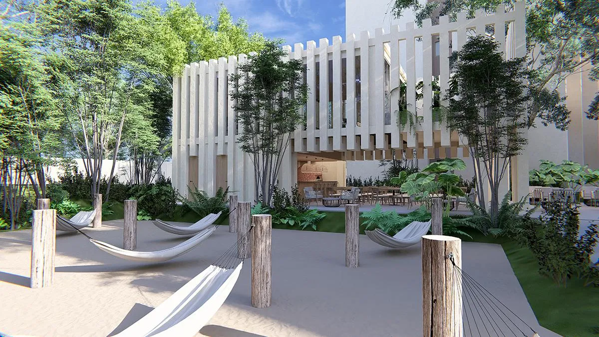 Alana cuenta con amenidades tipo resort como albercas para adultos y niños, casa club, coworking, gimnasio, mini golf, cancha de pádel, palapa bar, área de lectura, zona de asadores, cocina al aire libre y pet park.